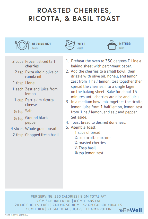 Roasted Cherries, Ricotta, & Basil Toast Recipe Post Date: September 23, 2025 Categories: Events, News, Promotion, Recipe, Wellness Try our Roasted Cherries, Ricotta, & Basil Toast Recipe.